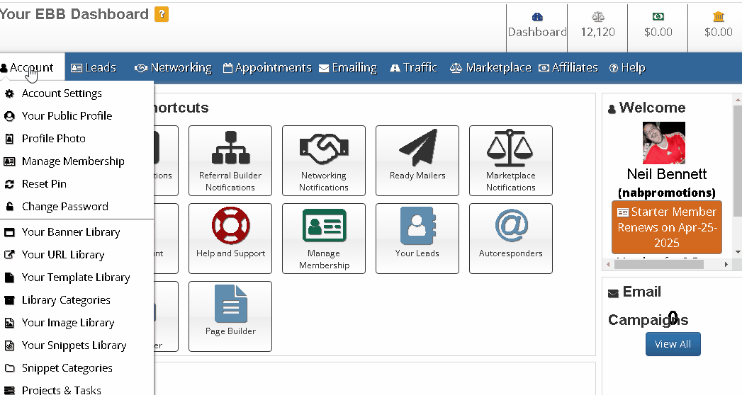 Below you will find an image of my EBB dashboard. From the image below you can see how simple the menu is to use.